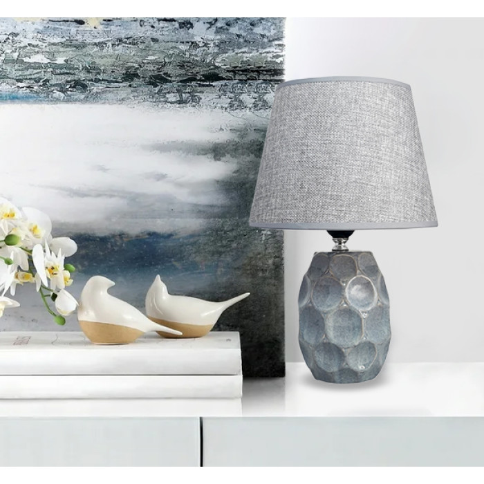 POWERTECH επιτραπέζιο φωτιστικό HLL-0134, E27, κεραμική βάση, γκρι