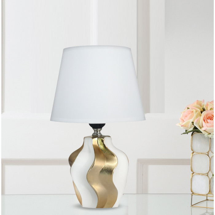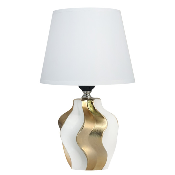 POWERTECH επιτραπέζιο φωτιστικό HLL-0135, E27 κεραμική βάση, λευκό/χρυσό