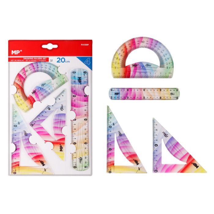 MP σετ πλαστικοί χάρακες PA159P, εύκαμπτοι, διάφανοι/πολύχρωμοι, 4τμχ