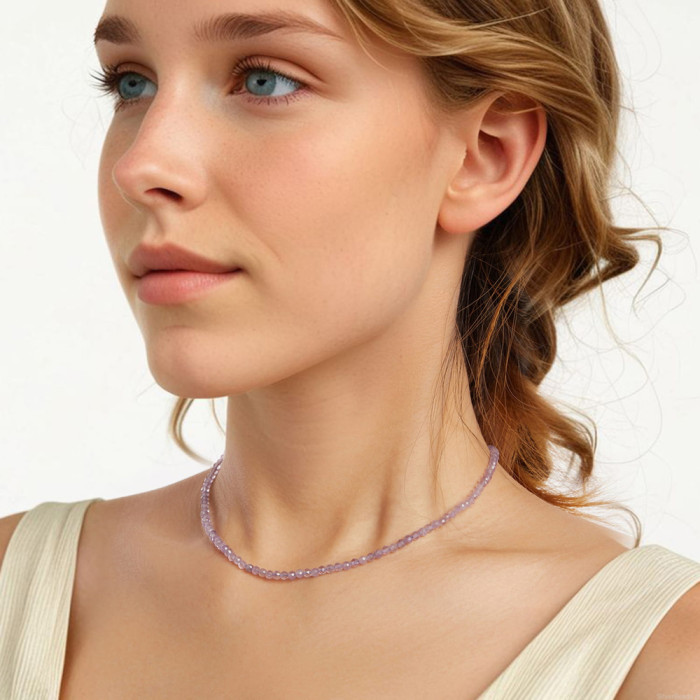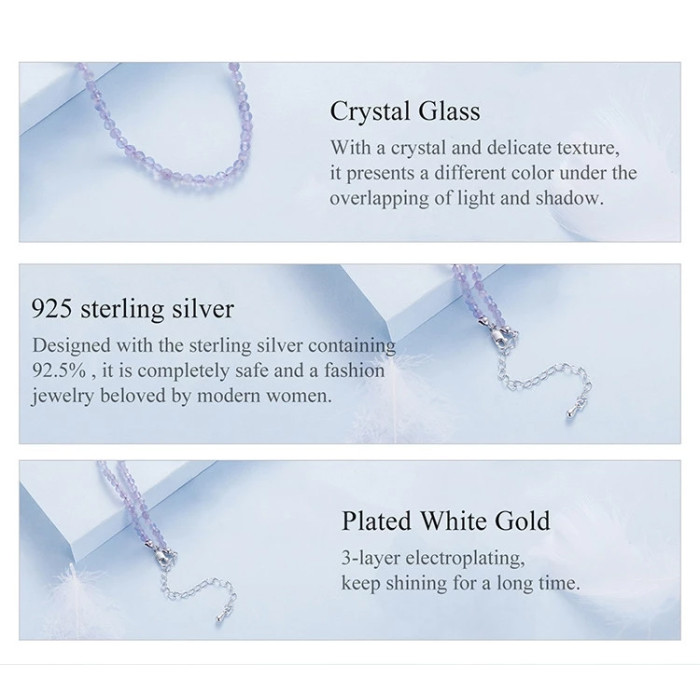 Εντυπωσιακό κολιέ Bamoer, με ιδιαίτερο και μοναδικό design. Διαθέτει ασημί αλυσίδα, διακοσμημένη με κρυστάλλινες χάντρες μωβ χρώματος.