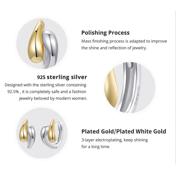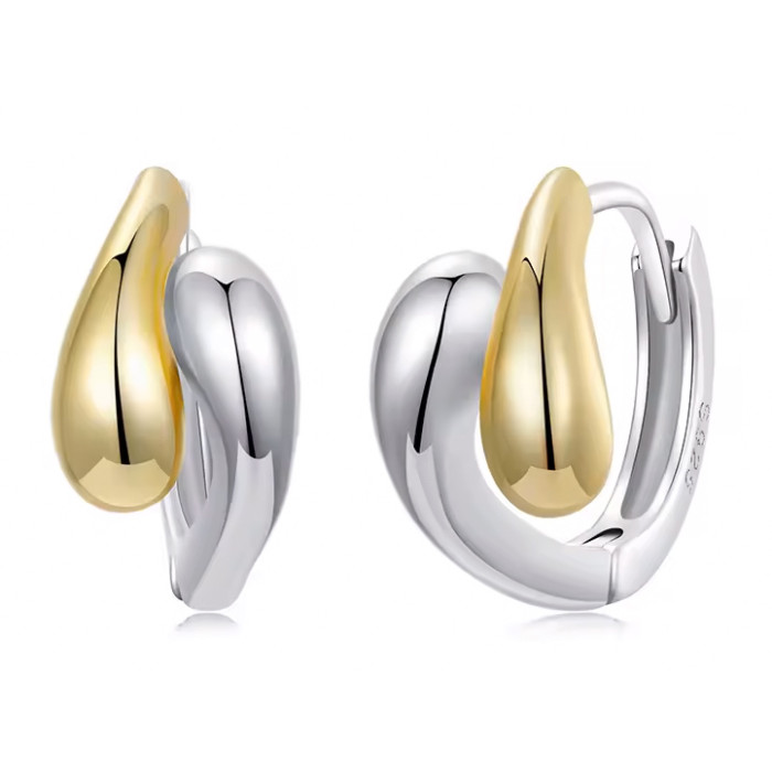 Μοντέρνα σκουλαρίκια κρίκοι Bamoer, κατασκευασμένα από ασήμι 925 και με επιχρυσωμένο φινίρισμα.