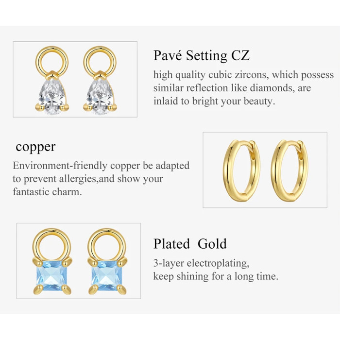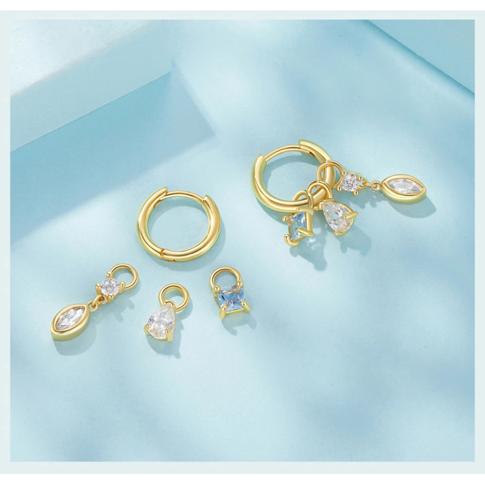 BAMOER σκουλαρίκια κρίκοι YIE262 με 3x σετ charm, κυβική ζιρκόνια, χαλκός, χρυσό