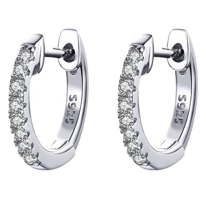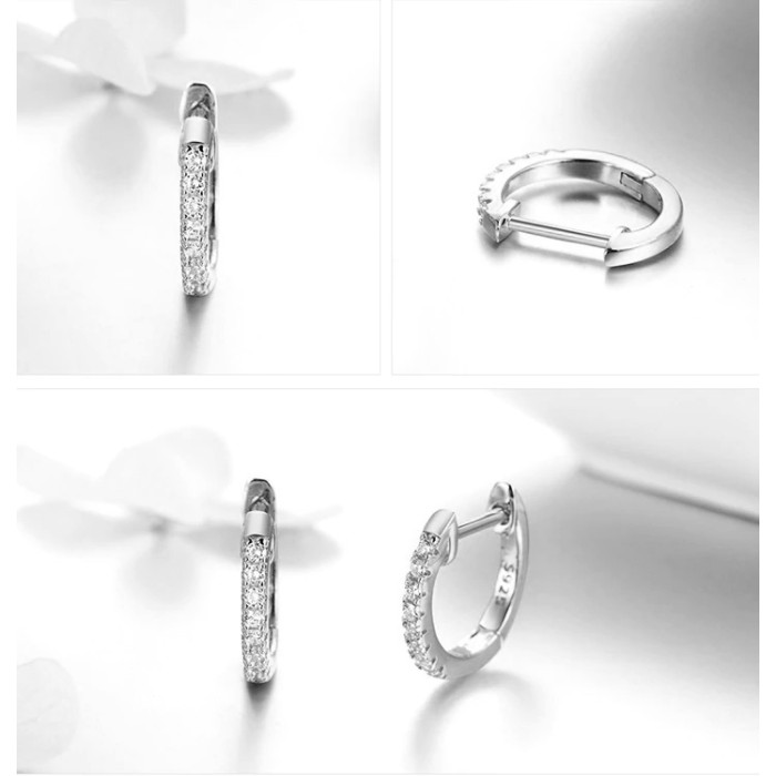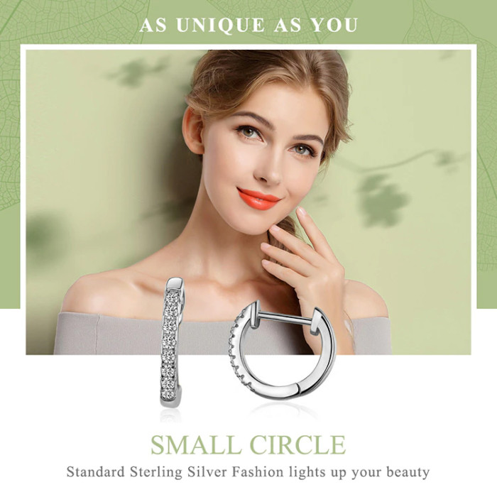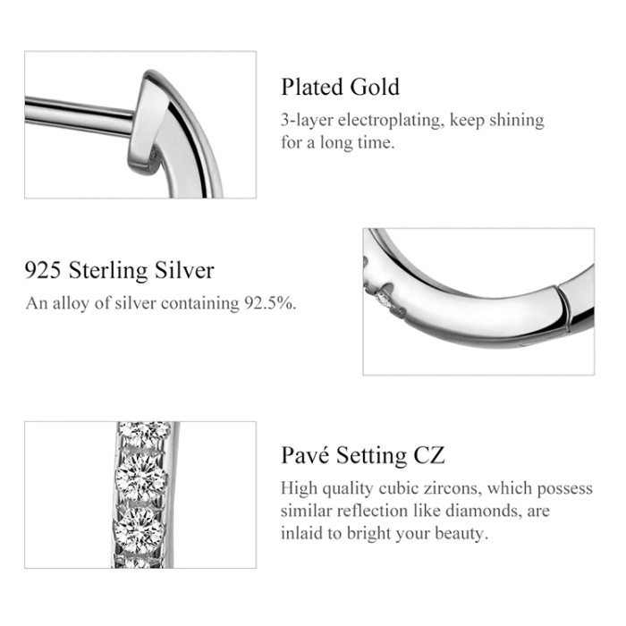 Σκουλαρίκια κρίκος Bamoer κατασκευασμένα από ασήμι 925, διακοσμημένα με αστραφτερή κυβική ζιρκόνια, λευκού χρώματος.