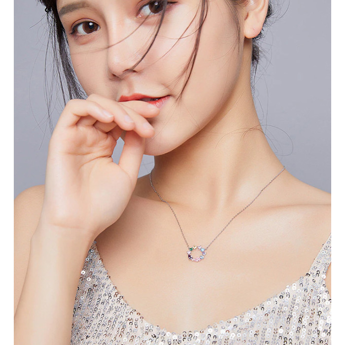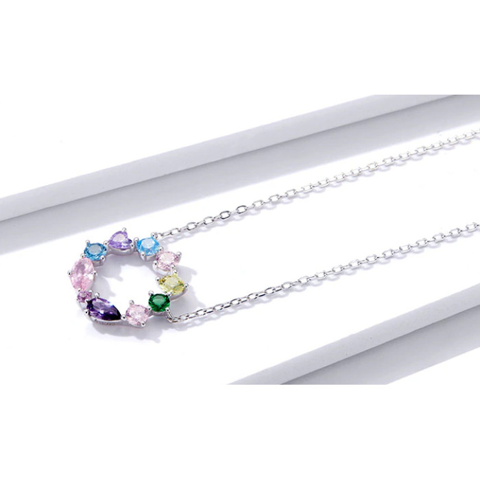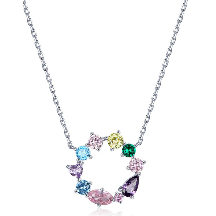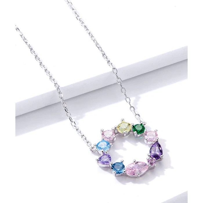 Κομψό κολιέ, διακοσμημένο με κυβική ζιρκόνια σε διάφορες κοπές και εντυπωσιακά χρώματα, η οποία προσφέρει μοναδική λάμψη στο κόσμημα και προσδίδει στυλ σε κάθε εμφάνιση.