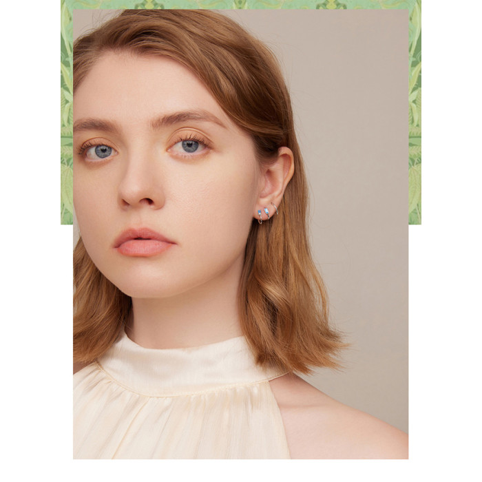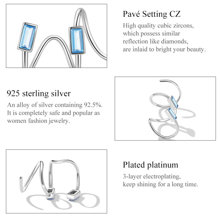 Ιδιαίτερα σκουλαρίκια, επιπλατινωμένα, διακοσμημένα με κυβική ζιρκόνια μπλε χρώματος, τα οποία στερεώνονται στον λοβό του αυτιού δημιουργώντας ένα εντυπωσιακό εφέ.