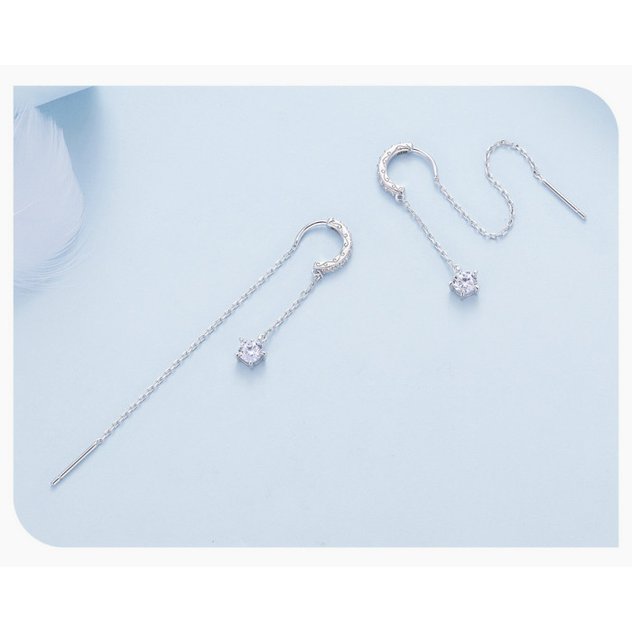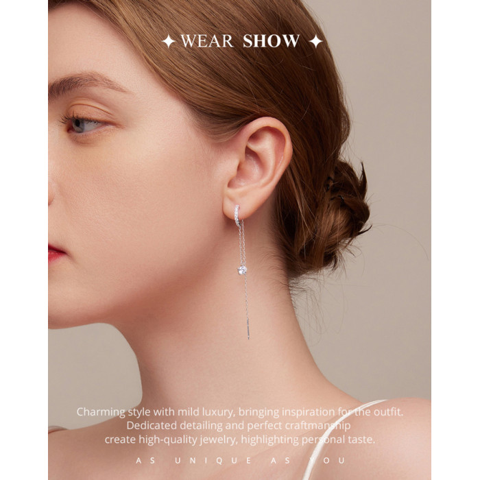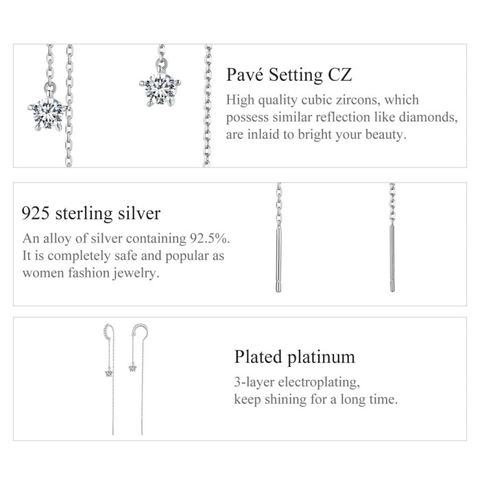 Κομψά, κρεμαστά σκουλαρίκια Bamoer κατασκευασμένα από ασήμι 925, επιπλατινωμένα, διακοσμημένα με εντυπωσιακή κυβική ζιρκόνια.