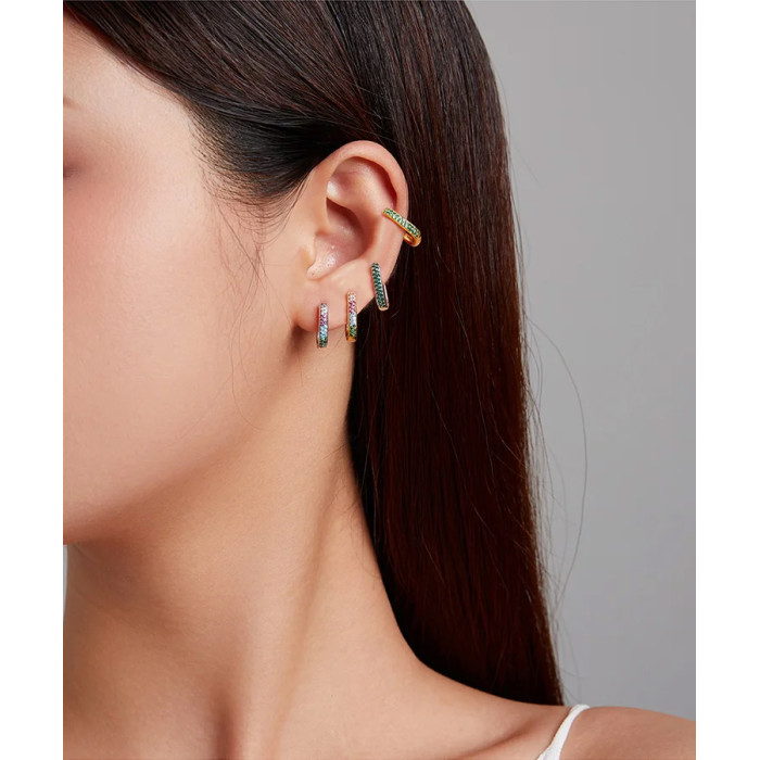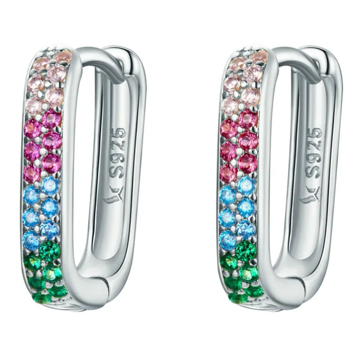 Εντυπωσιακά σκουλαρίκια κρίκοι σε οβάλ σχήμα, διακοσμημένο με κυβική ζιρκόνια σε εντυπωσιακά χρώματα που προσφέρει εξαιρετική λάμψη στο κόσμημα.