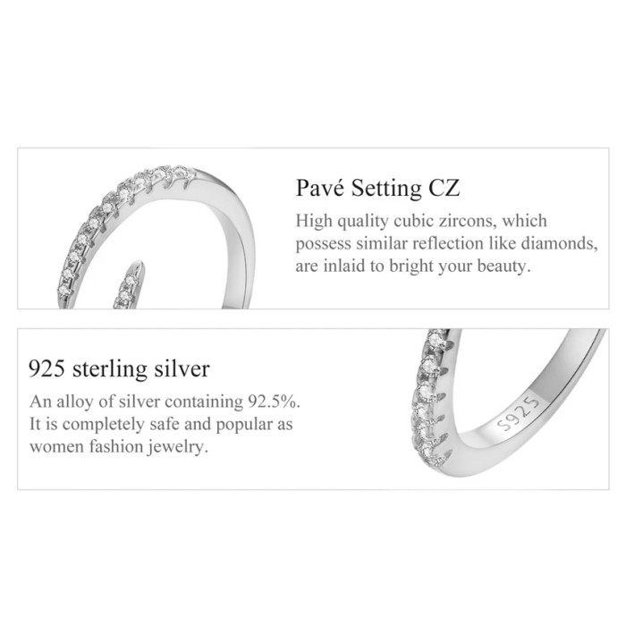 BAMOER δαχτυλίδι BSR470-AE, κυβική ζιρκόνια, ανοιγόμενο, ασήμι 925 ασημί