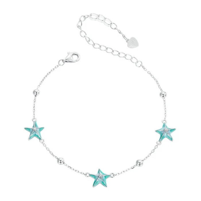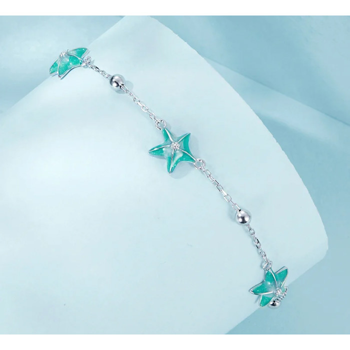 Κομψό βραχιόλι Bamoer, διακοσμημένο με ασημένιες μπίλιες και μενταγιόν σε σχήμα κοχύλι βεραμάν χρώματος.