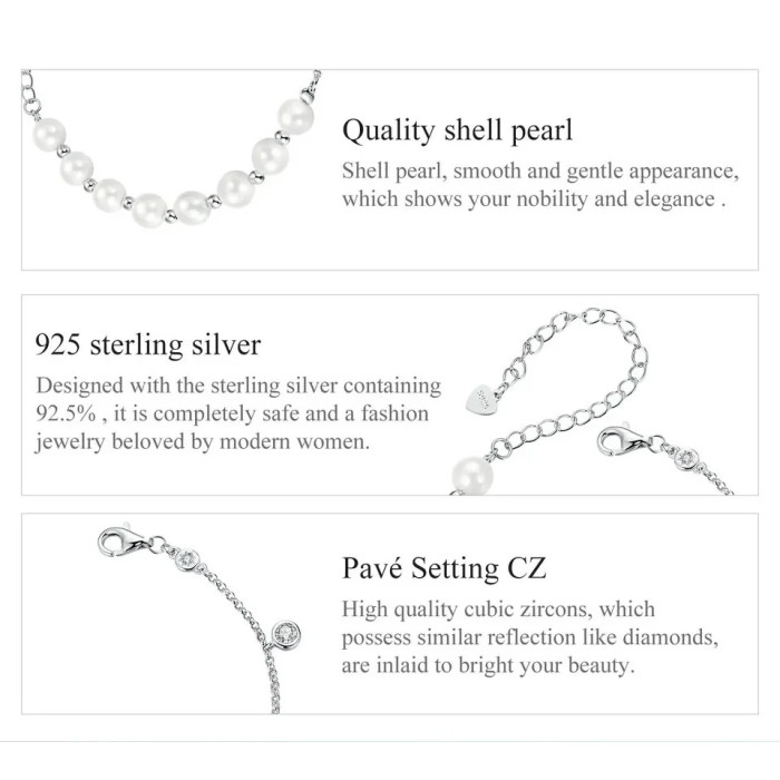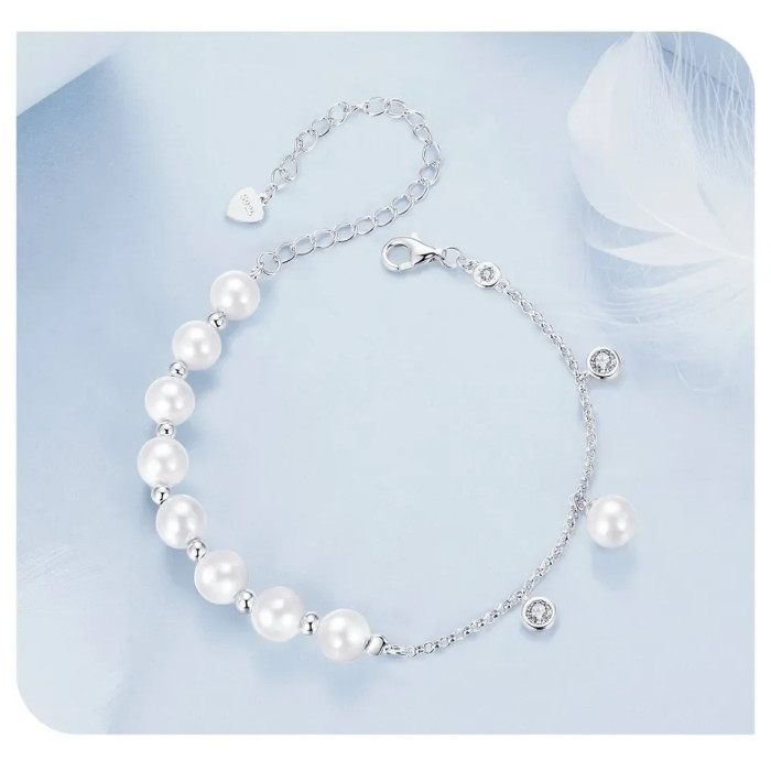 BAMOER βραχιόλι BSB189 με πέρλες & κυβική ζιρκόνια, ασήμι 925, ασημί