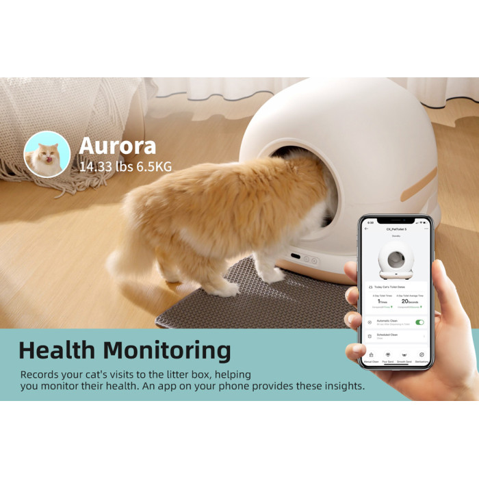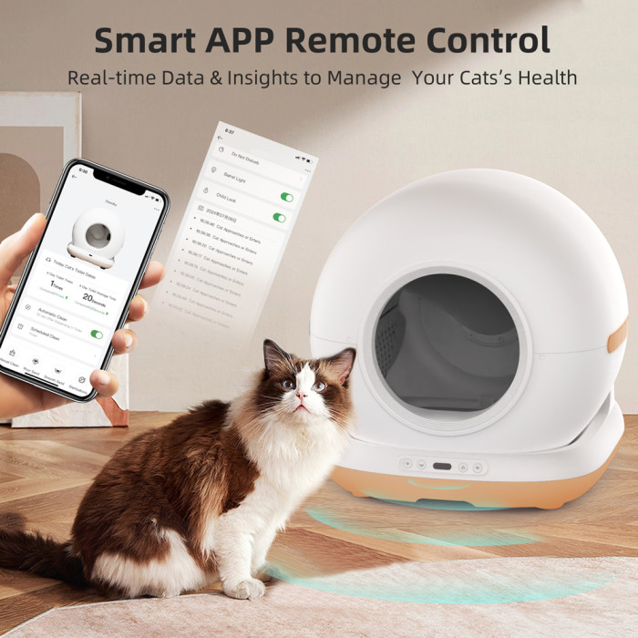 Μέσω της εφαρμογής για smartphone, μπορείτε να έχετε τον πλήρη έλεγχο της τουαλέτας, καθώς σας επιτρέπει να παρακολουθείτε στατιστικά για την τουαλέτα και την υγεία της γάτας σας (ημερήσια, εβδομαδιαία, μηνιαία ή ετήσια), να ενεργοποιείτε τον καθαρισμό, την αποστείρωση, τον φωτισμό και άλλες λειτουργίες από απόσταση.