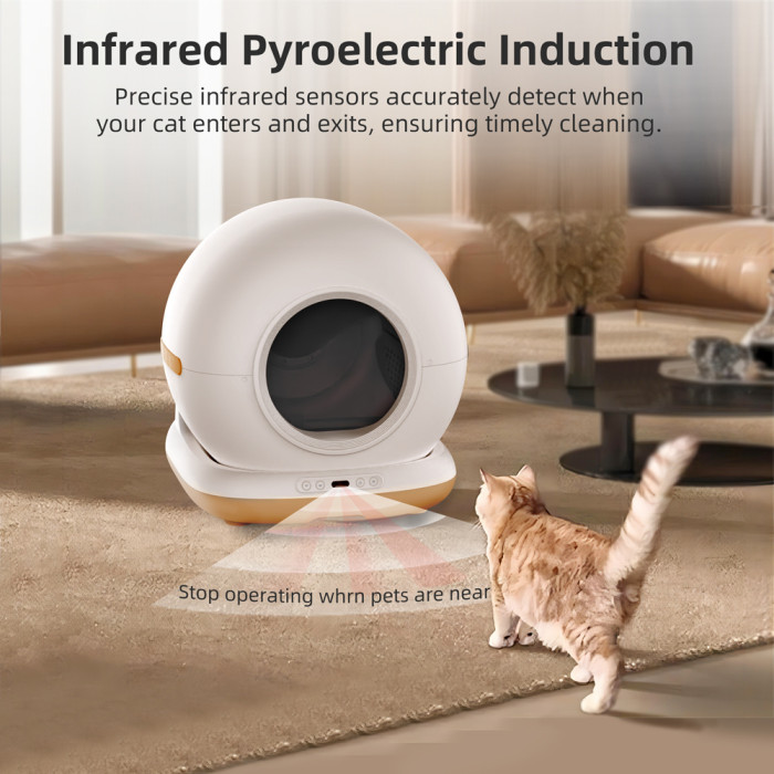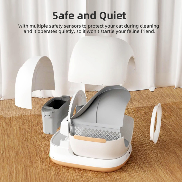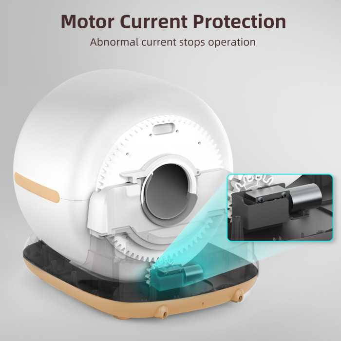 Εξοπλίζεται με αισθητήρα κίνησης και βαρύτητας, χάρη στους οποίους η τουαλέτα σταματά αυτόματα όταν η γάτα πλησιάζει, προσφέροντας μέγιστη ασφάλεια.
