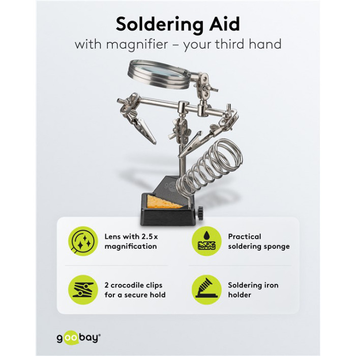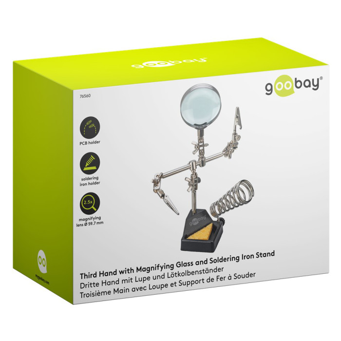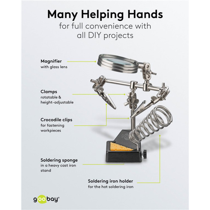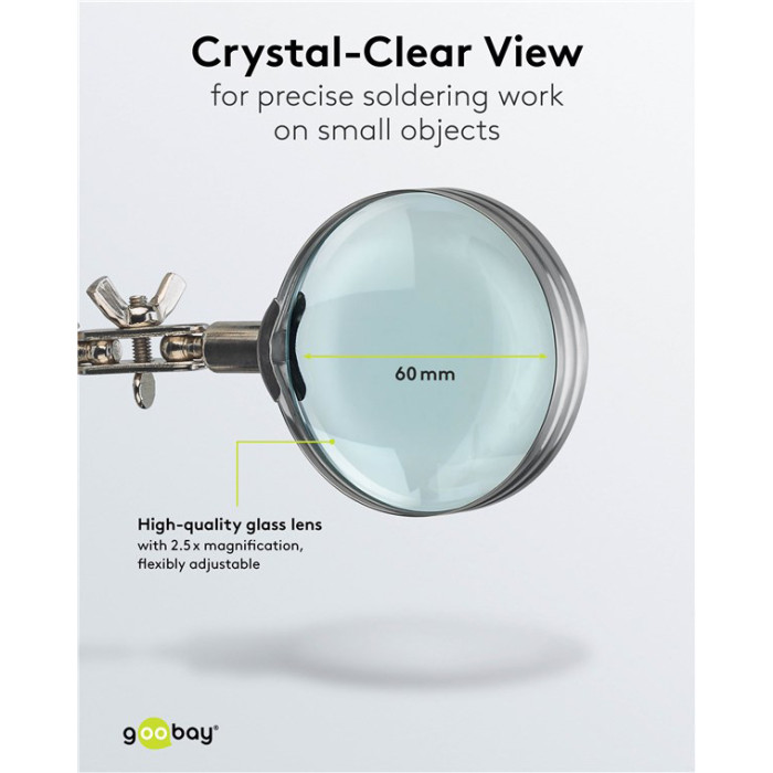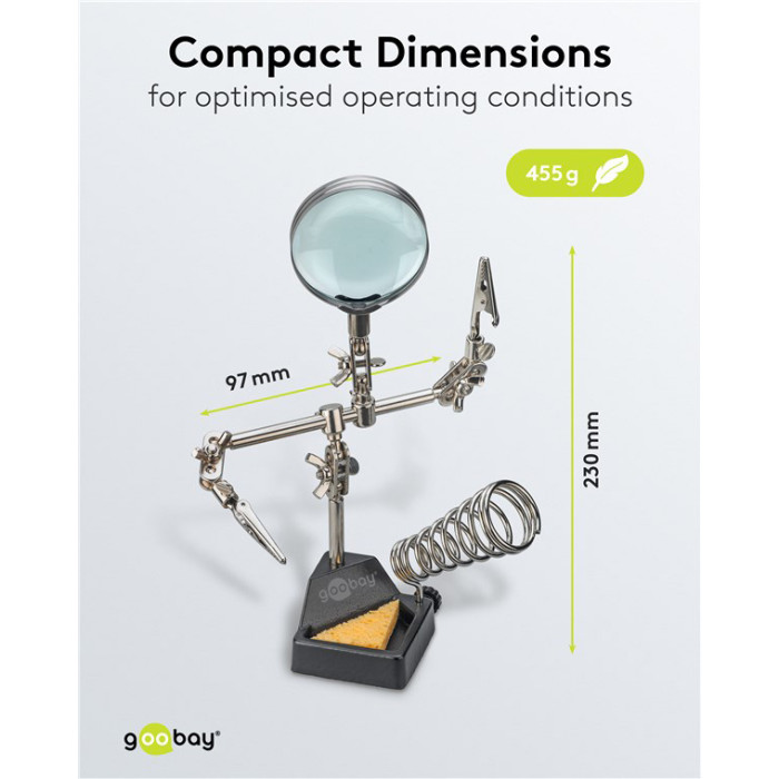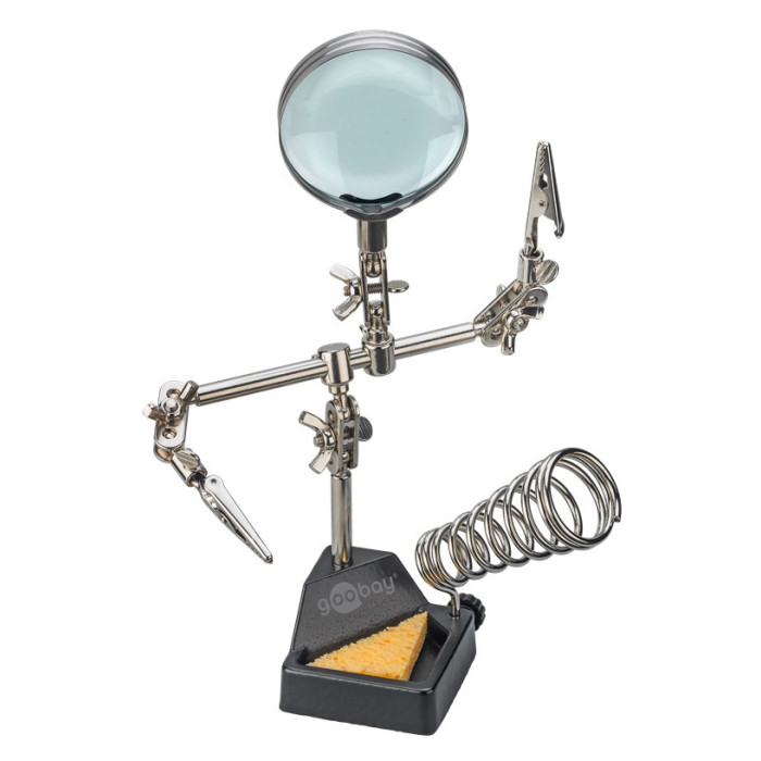 GOOBAY βάση στήριξης πλακέτας 76560 με μεγεθυντικό φακό & θέση για κολλητήρι, 2x βραχίονες, μαύρη