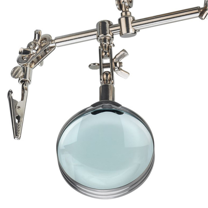 Εξοπλίζεται με μεγεθυντικό φακό 2.5x για λεπτομερείς εργασίες και θέση για κολλητήρι που διευκολύνει την εμπειρία της εργασίας.