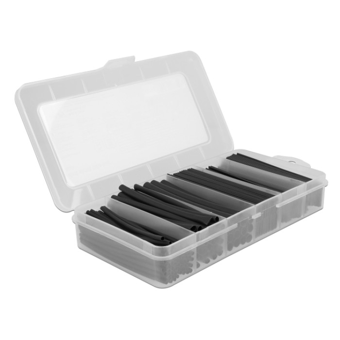 Το σετ αποτελείται από έξι διαφορετικές διαμέτρους με λόγο συρρίκνωσης στο ένα δεύτερο της αρχικής του διαμέτρου, με την χρήση πιστολιού θερμού αέρος. Διατίθεται σε πρακτικό κουτί αποθήκευσης ιδανικό για την ταξινόμηση και προστασία των μονωτικών το οποίο μπορεί να επαναχρησιμοποιηθεί για την αποθήκευση διαφόρων αξεσουάρ.