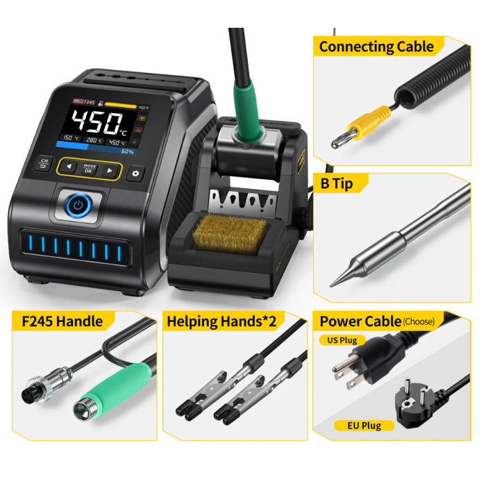 Εξοπλισμένος με κολλητήρι και ρυθμιζόμενη θερμοκρασία από 100 °C έως 450 °C, προσφέρει γρήγορη θέρμανση και ευελιξία στη χρήση.