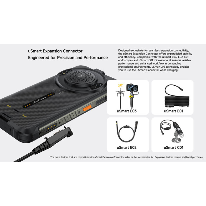 Η συμβατότητα του με uSmart αξεσουάρ (π.χ. ενδοσκοπικές κάμερες) της Ulefone, σας δίνει την δυνατότητα να επεκτείνετε τις λειτουργίες του smartphone.