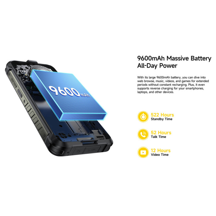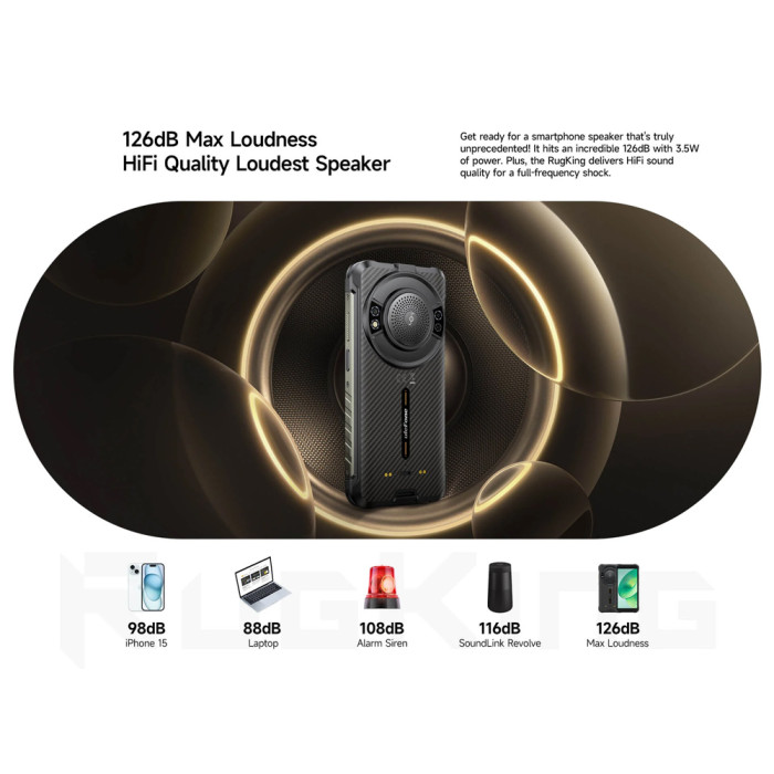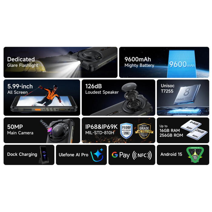 ULEFONE smartphone RugKing με ηχείο 3.5W, 5.99", 8/256GB, 9600mAh, IP68/IP69K, μαύρο