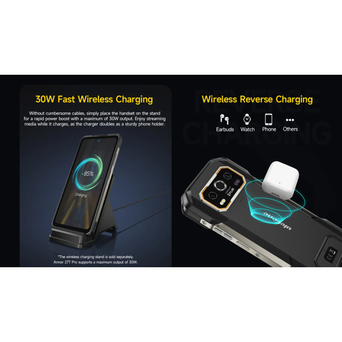 Με μπαταρία 10600mAh, το Armor 27T Pro προσφέρει μεγάλη αυτονομία, που θα σας απαλλάξει από τις συχνές αναζητήσεις τροφοδοσίας. Η φόρτιση του γίνεται με απόδοση 33W ενώ υποστηρίζει και ασύρματη φόρτιση με απόδοση 30W.