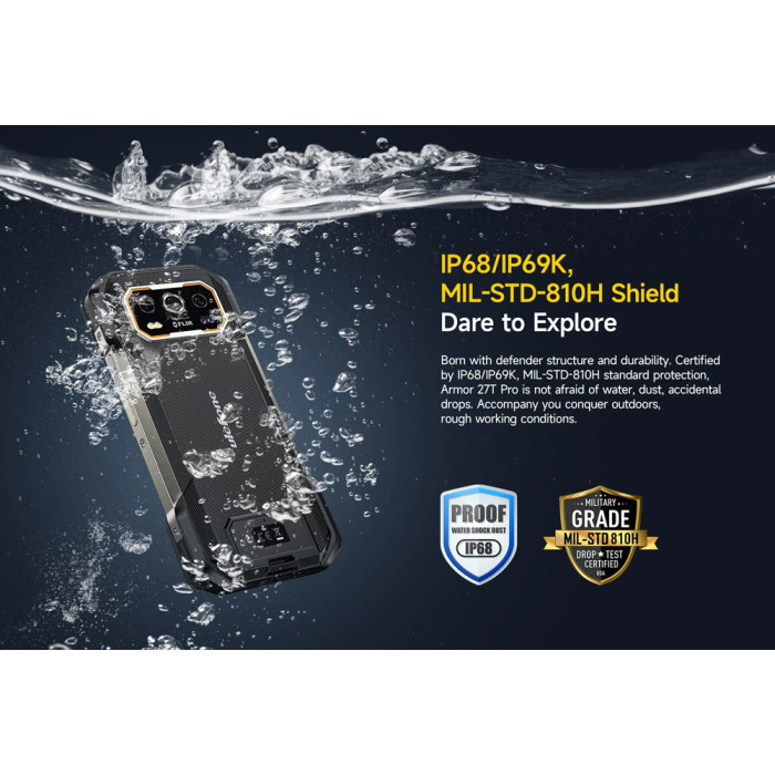 Με πιστοποίηση IP68/IP69K και πρότυπο MIL-STD-810H, το Armor 27T Pro είναι σχεδιασμένο για να αντέχει σε ακραίες συνθήκες χρήσης και περιβάλλοντα.
