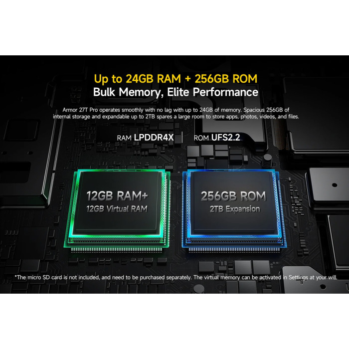 Με 12GB (+12GB virtual) RAM και 256GB ROM για να αποθηκεύετε τα αγαπημένα σας αρχεία, φωτογραφίες και βίντεο. Επιπλέον, προσφέρει την δυνατότητα να επεκτείνετε τον χώρο αποθήκευσης του smartphone με κάρτα micro SD έως 2TB.