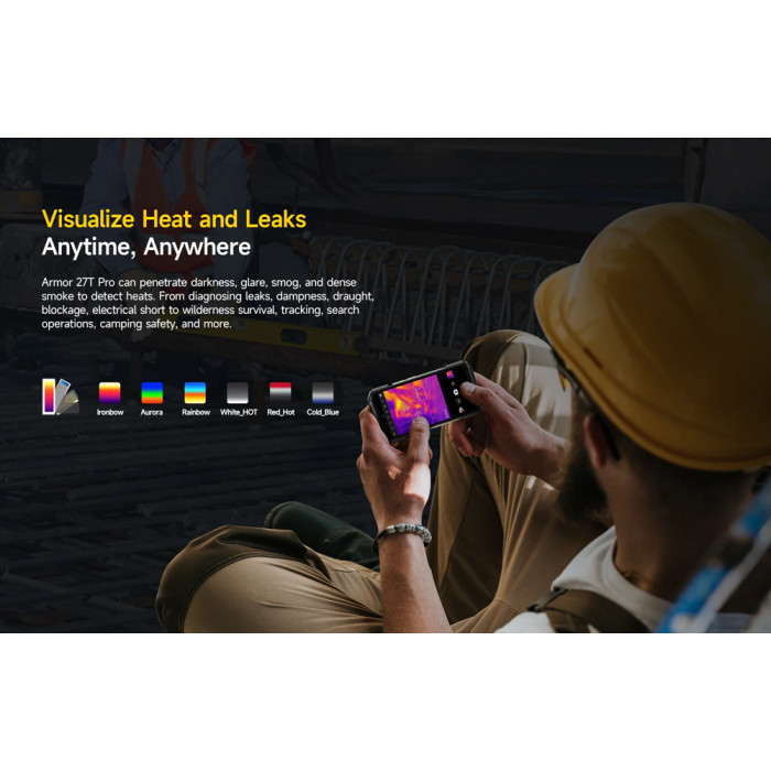 Το Armor 27T Pro ενσωματώνει αισθητήρα θερμικής εικόνας FLIR που σας επιτρέπει να ανιχνεύετε με θερμική εικόνα, θερμοκρασίες από -10 °C έως 450 °C.