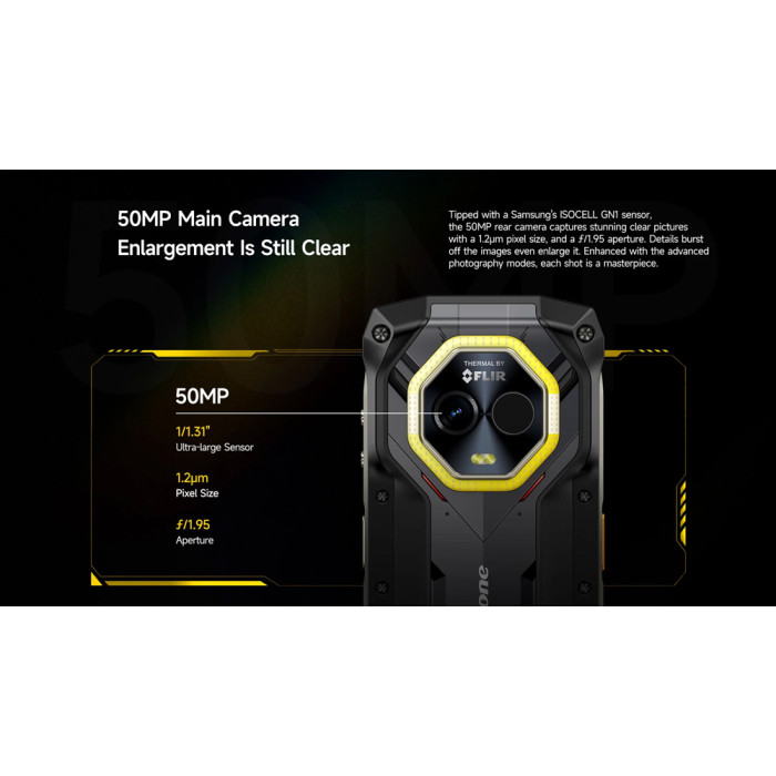 Με 50MP κύρια κάμερα και εμπρόσθια κάμερα 32MP, μπορείτε να τραβήξετε εικόνες υψηλής ανάλυσης, με εξαιρετική σαφήνεια και ζωντανά φυσικά χρώματα ενώ υποστηρίζει και υποβρύχια λήψη φωτογραφιών και βίντεο. Επιπλέον, ενσωματώνει αισθητήρα θερμικής εικόνας FLIR που σας επιτρέπει να ανιχνεύετε με θερμική εικόνα, θερμοκρασίες από -10 °C έως 450 °C.