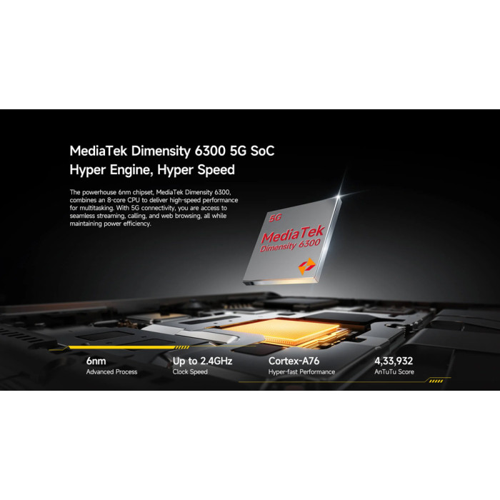 -Επεξεργαστής: MediaTek Dimensity 6300, MT6835T, Octa Core, up to 2.4GHz