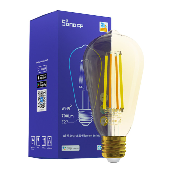 SONOFF Smart λάμπα LED Filament B02-F-ST64, Wi-Fi, 7W, E27, 1800K-5000K