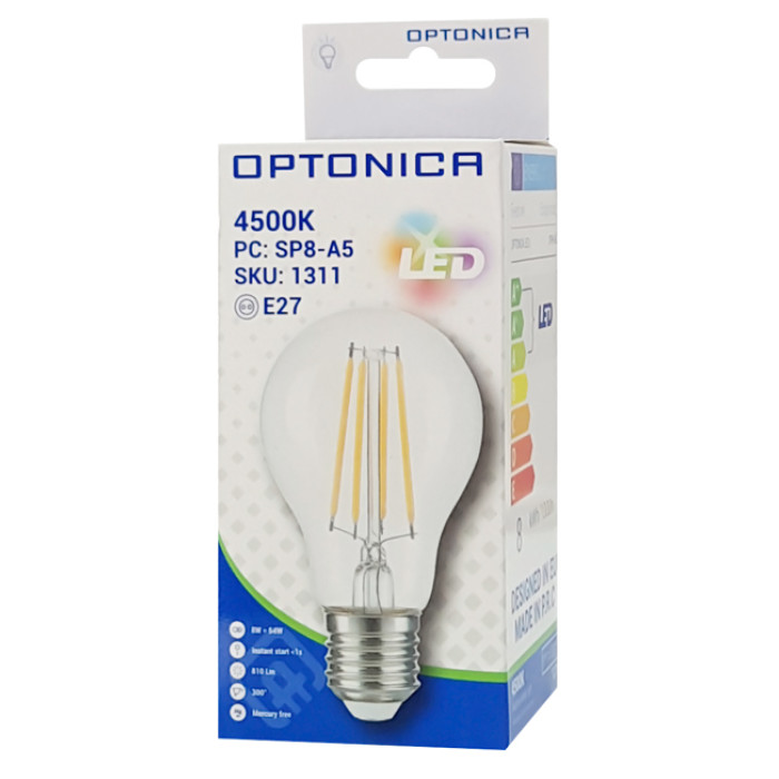 OPTONICA LED λάμπα A60 Filament 1311, 8W, 4500K, E27, 810lm
