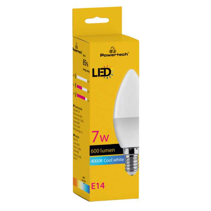POWERTECH LED λάμπα candle E14-011, 7W, 4000K, E14, 600lm