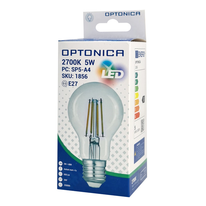 OPTONICA LED λάμπα A60 1856, Filament, 5W, 2700K, 600lm, E27