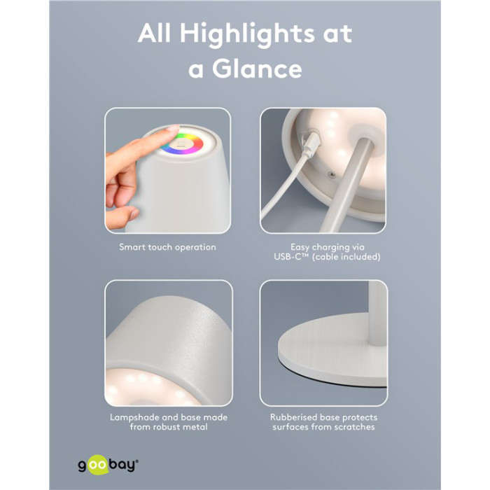 GOOBAY επιτραπέζιο φωτιστικό 73928, RGB, επαναφορτιζόμενο, λευκό