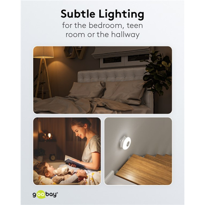 Φωτιστικό νυκτός LED της Goobay με 3 επιλογές χρώματος φωτισμού και passthrough πρίζα schuko για την αξιοποίηση της πρίζας του σπιτιού. Εξοπλίζεται με αισθητήρα φωτός για την αυτόματη ενεργοποίηση του φωτιστικού όταν η φωτεινότητα φτάσει σε επίπεδο κάτω από 21 lx.
