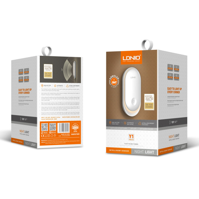 LDNIO φωτιστικό νυκτός Y1 με αισθητήρα φωτός, 0.5W, 3500K