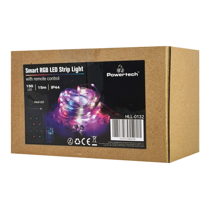 POWERTECH smart LED καλωδιοταινία HLL-0132, RGB, IP44, Bluetooth, 15m