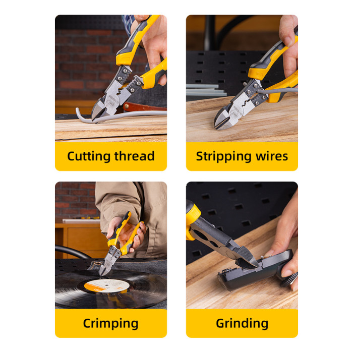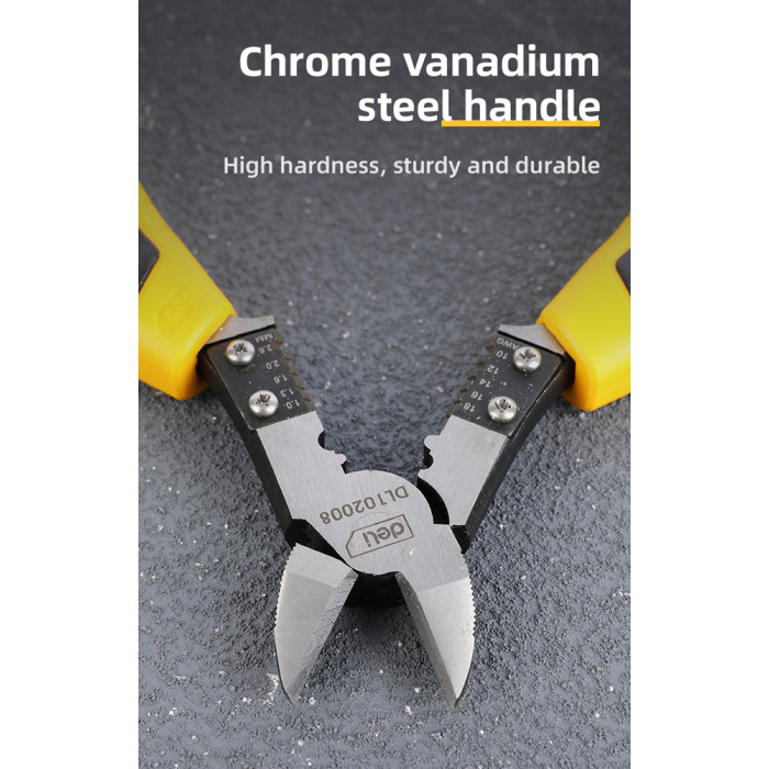 Πολυλειτουργικό εργαλείο της Deli, ιδανικό για κοπή, απογύμνωση καλωδίων και πρεσάρισμα ακροδεκτών.