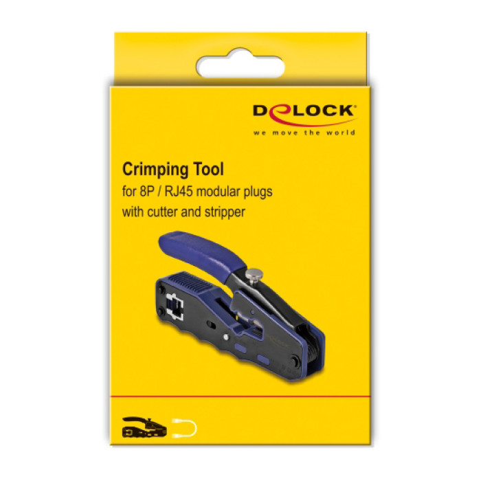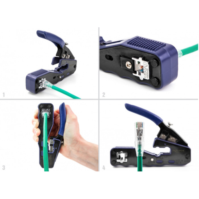 Αυτή η πρέσα ακροδεκτών δικτύου από την Delock είναι κατάλληλη για την γρήγορη εγκατάσταση ένα βύσματος σε ένα καλώδιο δικτύου RJ45/8P.