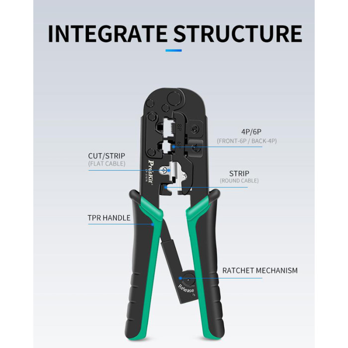 PROSKIT πρέσα ακροδεκτών CP-376TR για καλώδια δικτύου 4P/6P/8P