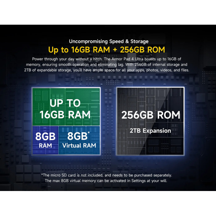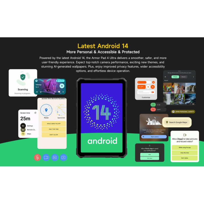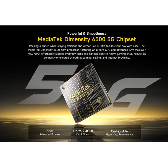 Εξοπλισμένο με επεξεργαστή 8 πυρήνων και λειτουργικό Android 14, το Armor Pad 4 Ultra προσφέρει υψηλή απόδοση για απρόσκοπτη περιήγηση στο διαδίκτυο, παιχνίδια, πολυμέσα και πολλά άλλα.