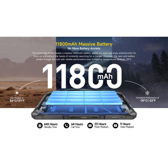 Με μπαταρία 11800mAh, το Armor Pad 4 Ultra προσφέρει μεγάλη αυτονομία, που θα σας απαλλάξει από τις συχνές αναζητήσεις τροφοδοσίας.