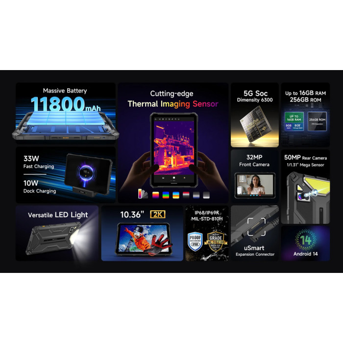 ULEFONE tablet Armor Pad 4 Ultra Thermal, 10.36", 8/256GB, 11800mAh, IP68/IP69K, 5G, μαύρο