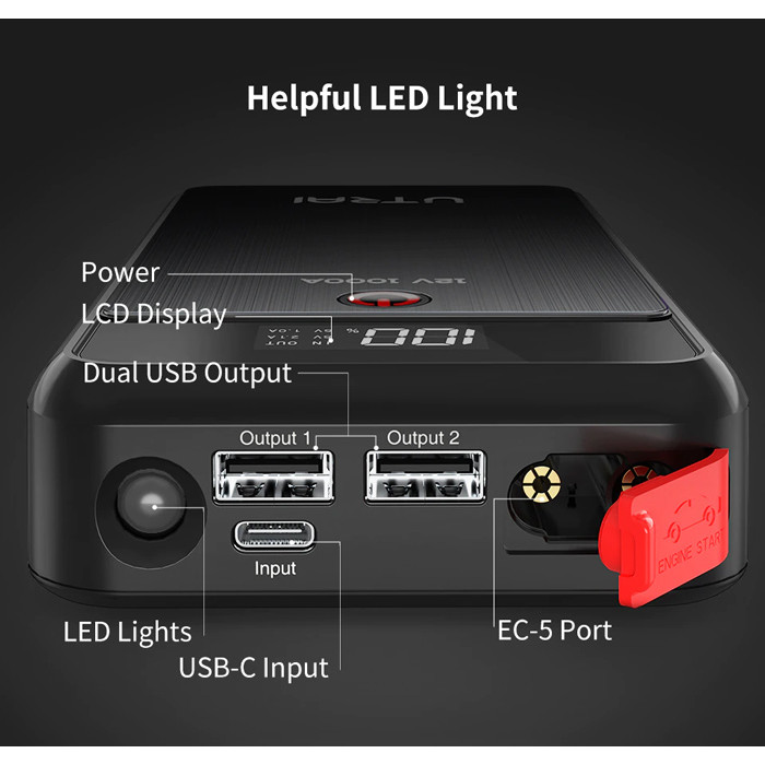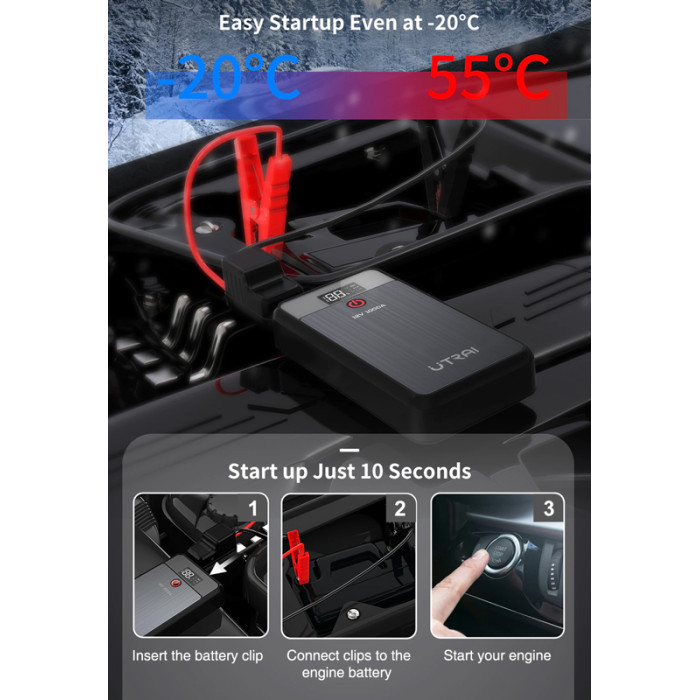 UTRAI εκκινητής μπαταρίας αυτοκινήτου Jstar Air με φακό, 12V/1000A, 13000mah