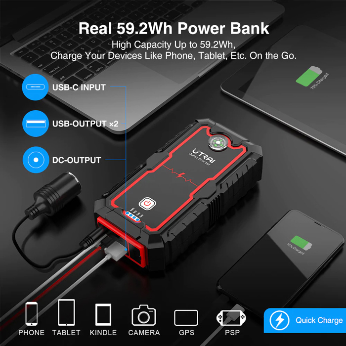 UTRAI εκκινητής μπαταρίας αυτοκινήτου Jstar One με φακό, 12V/2000A, 22000mAh