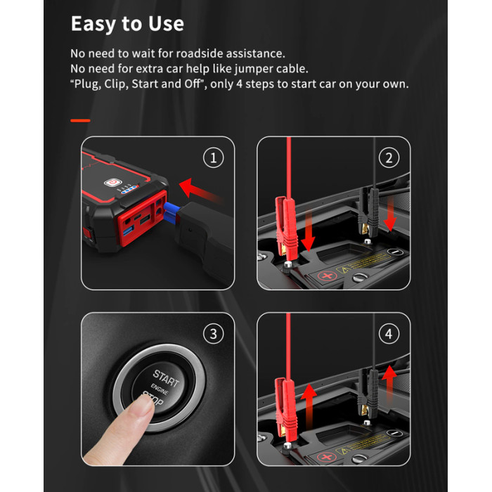 Φορητός εκκινητής μπαταρίας αυτοκινήτου Jstar One κατάλληλος για οχήματα έως 8lt βενζίνης και έως 6.5lt diesel.