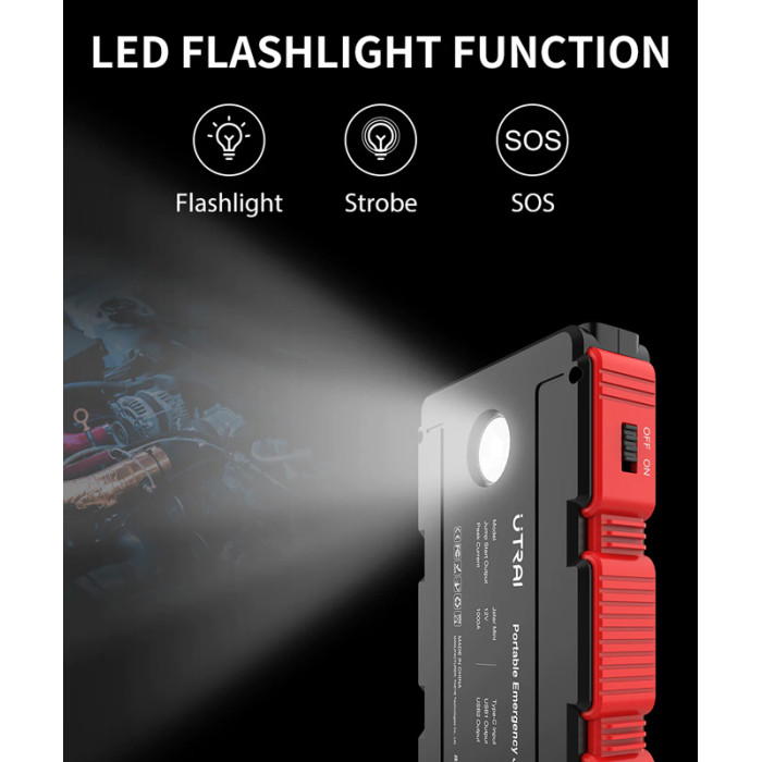 UTRAI εκκινητής μπαταρίας αυτοκινήτου JS-Mini με φακό, 12V/1000A, 13000mah