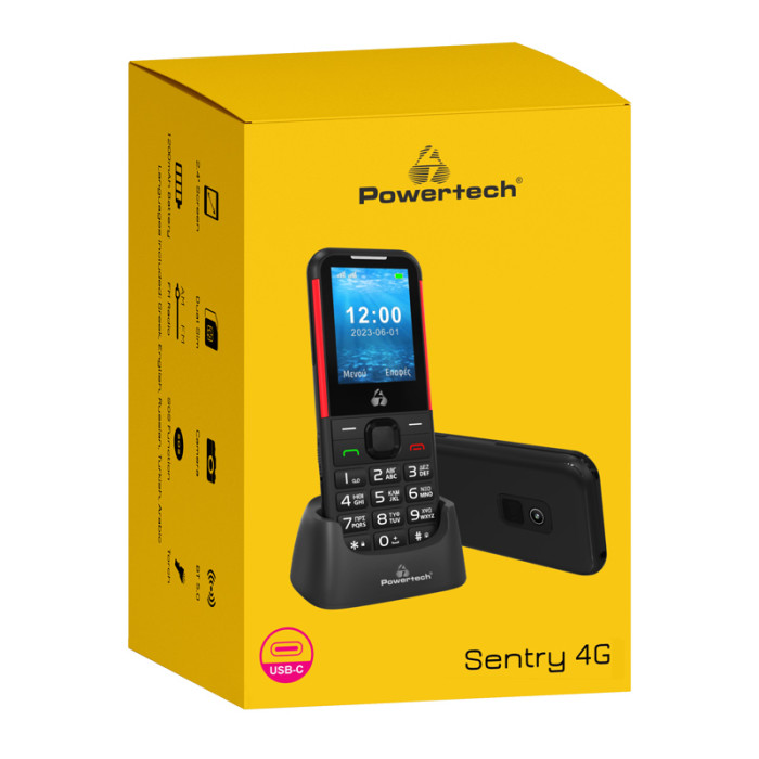 POWERTECH κινητό τηλέφωνο Sentry 4G PTM-33, SOS Call, με φακό, μαύρο