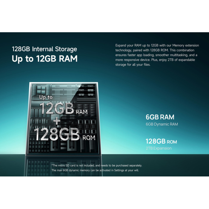 Με 6GB (+6GB virtual) RAM και 128GB ROM για να αποθηκεύετε τα αγαπημένα σας αρχεία, φωτογραφίες και βίντεο. Επιπλέον, προσφέρει την δυνατότητα να επεκτείνετε τον χώρο αποθήκευσης του smartphone με κάρτα micro SD έως 2TB.