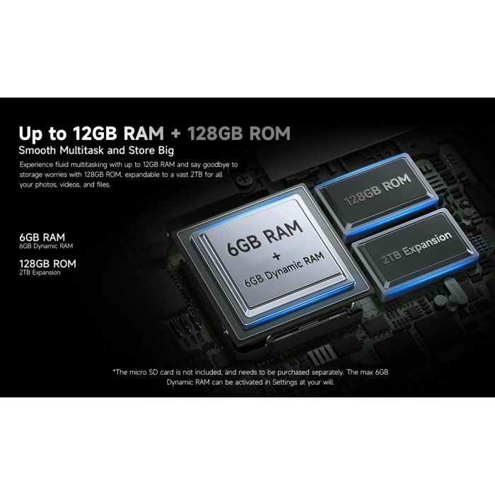 Με 6GB (+6GB virtual) RAM και 128GB ROM για να αποθηκεύετε τα αγαπημένα σας αρχεία, φωτογραφίες και βίντεο. Επιπλέον, προσφέρει την δυνατότητα να επεκτείνετε τον χώρο αποθήκευσης του smartphone με κάρτα micro SD έως 2TB.