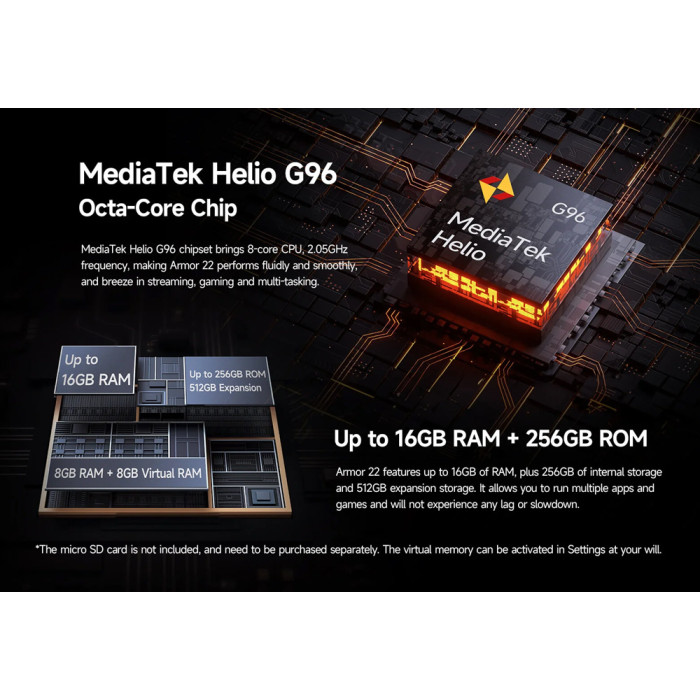 Με 8GB (+8GB virtual) RAM και 128GB ROM για να αποθηκεύετε τα αγαπημένα σας αρχεία, φωτογραφίες και βίντεο. Επιπλέον, προσφέρει την δυνατότητα να επεκτείνετε τον χώρο αποθήκευσης του smartphone με κάρτα micro SD έως 512GB.